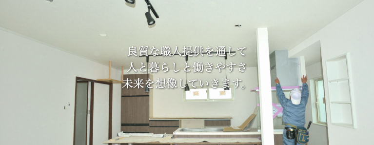 当社は、東京都は基より近県の総合建築業として、前身の会社より引き継いだ心のこもった施工を心がけております。 常に高い意志を持ち、時代の流れを予見し、新しい建築業を探求し、変革へ邁進してきたと自負しております。 今後も、最も重要な経営資源は「人」であると認識し、「顧客様第一主義」をモットーに、チャレンジ精神を持ってお客様に奉仕し、ひいては独自の価値を生む地域創造に取り組んでいきたいと思っております。 私どもは、社業の発展を通じて、地域社会や街を、そして人の心を豊かにしていきます。 対応可能工事 ・クロス ・貼床 ・ボード/大工 ◼️リノベーション 例:和室→洋室変更工事 契約形態:請負を希望しておりますが、人工でも相談可能です。