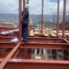 鉄骨建て方、鍛治、テント設営、などが普段やっている施工です。 個人事業主でやっている女職人です。 バリバリ鉄骨建て方や、鍛治、の現場に入ってもっともっとスキルアップしたいです! やる気しかないです!