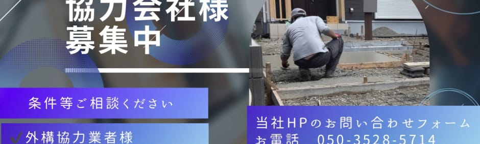 千葉県流山市にて【エクステリア・外構】をメインに13年従事しております。 2〜4名の少数精鋭体制です。 現場につきまして注文住宅のハウスメーカー様よりご信頼頂いており一次受けで担っております。 また、請負で協力会社様を探しております。 品質・安全・工程を守りつつ、元請け様・現場で働く人、双方にメリットのある進行を心掛けています。 一度きりでなく、長期的にお互いの利益につながるお付き合いができれば幸いです。